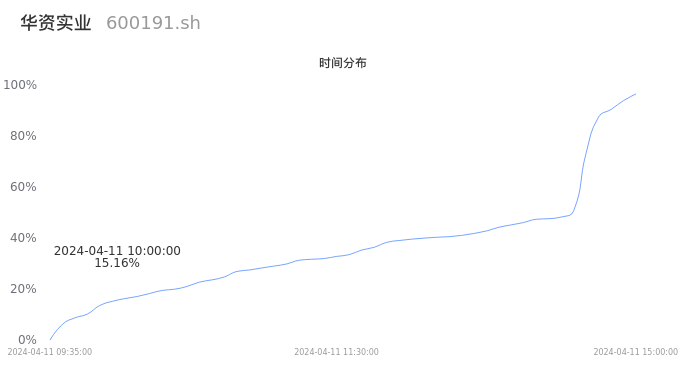 600191华资实业2024年04月11日成交13.41万手,成交金额7136.59万元,相较昨日缩量1024手,换手率2.77%,成交清淡。
