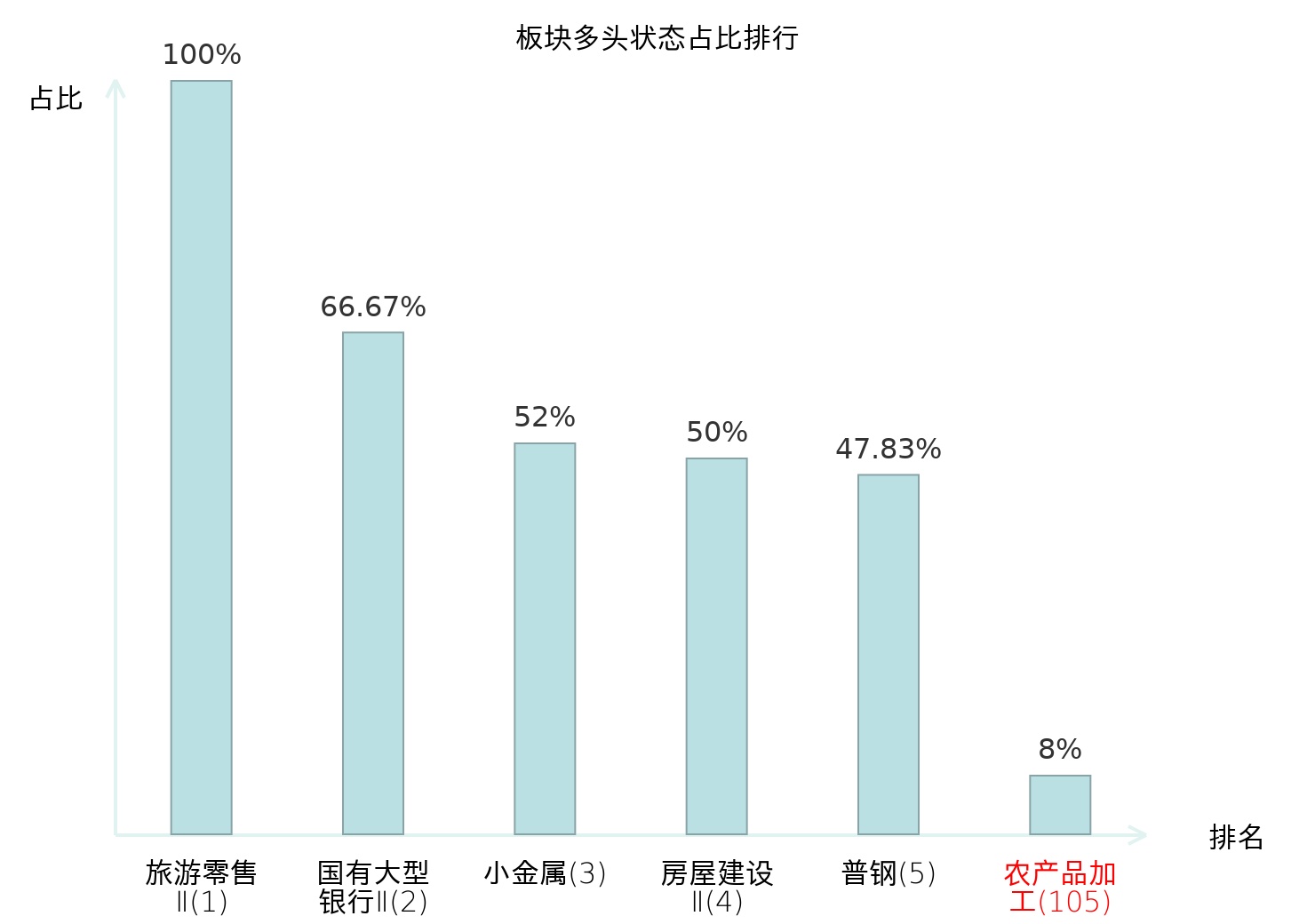 全市场所有行业板块中主力多头状态占比排名中,旅游零售Ⅱ板块位居第一。其他电源设备Ⅱ板块名次提升最快,较昨日上升55位。