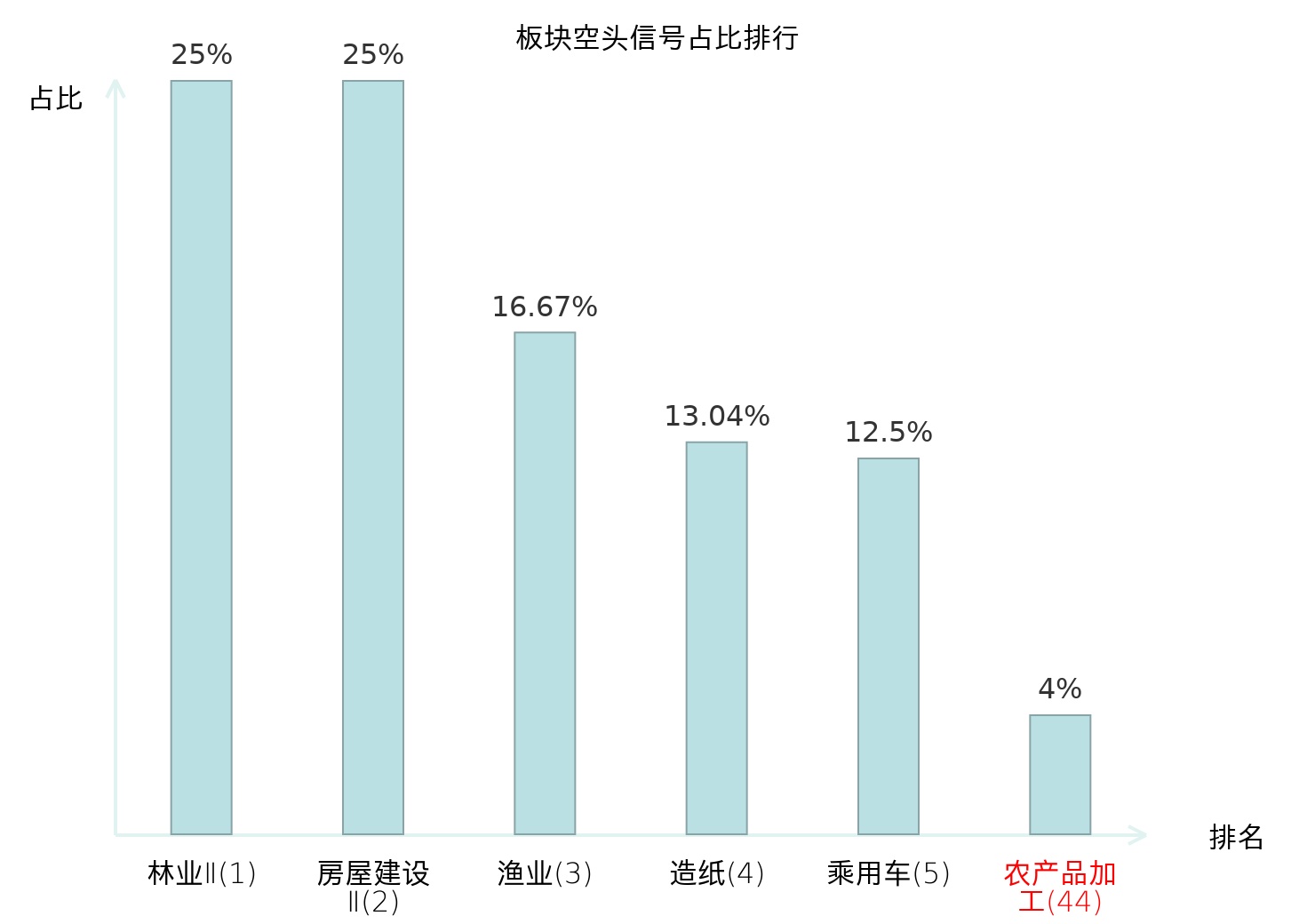 全市场所有行业板块中主力空头信号占比排名中,林业Ⅱ板块位居第一。通信设备板块名次提升最快,较昨日上升115位。