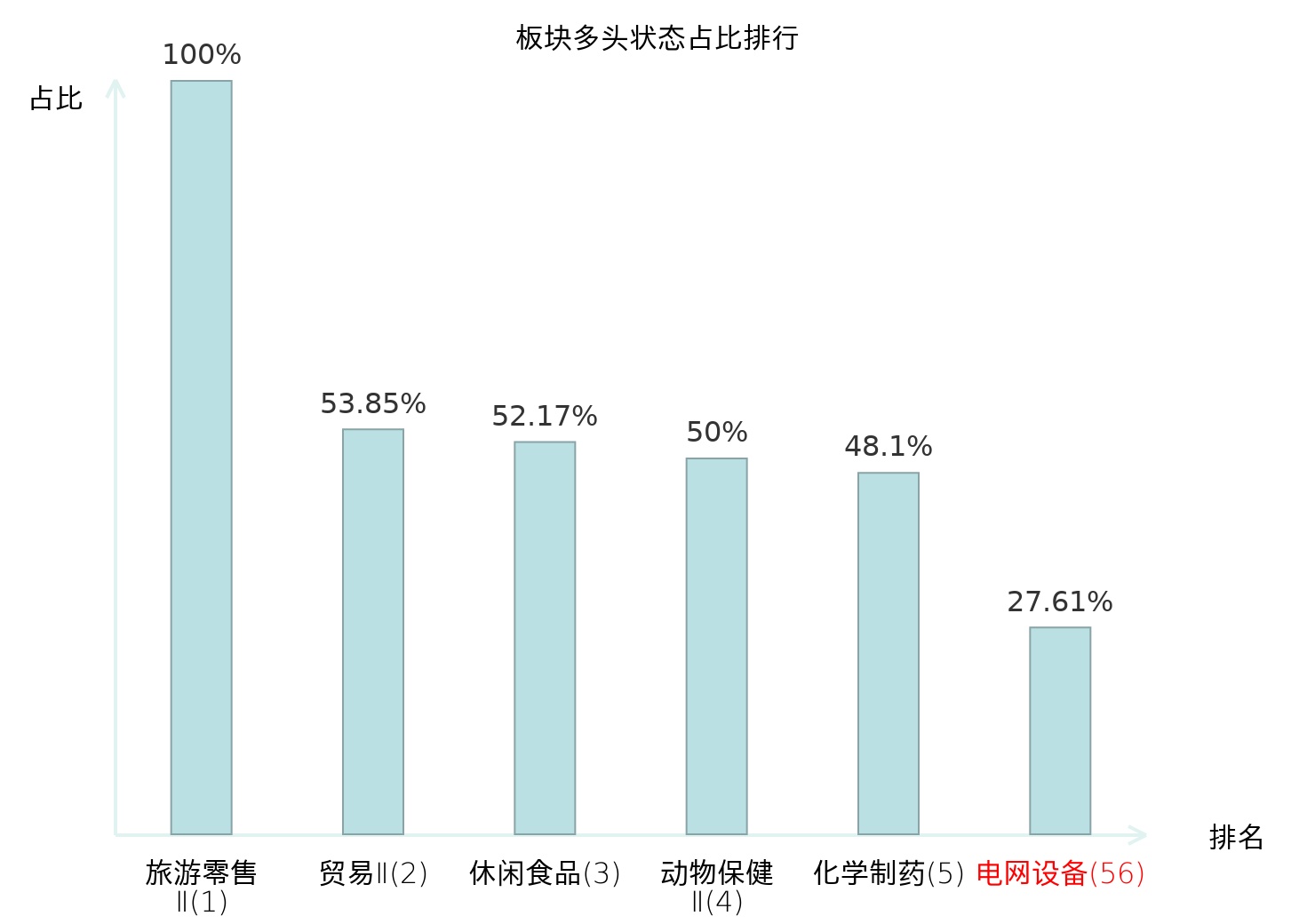 从主力宝信号数据分析,长城电工所属的电网设备板块中共37只股票处于主力多头状态,主力多头状态占比在全行业中排名第56位,较昨日上升4位。排名的提升表明主力对电网设备行业的看多意愿增强,这为投资者提供了该板块可能具有投资机会的重要线索。全市场所有行业板块中主力多头状态占比排名中,旅游零售Ⅱ板块位居第一;白酒Ⅱ板块名次提升最快,较昨日上升47位。这些变动反映了主力资金在不同行业间的偏好调整,为投资者提供了市场情绪和潜在投资机会的重要依据。