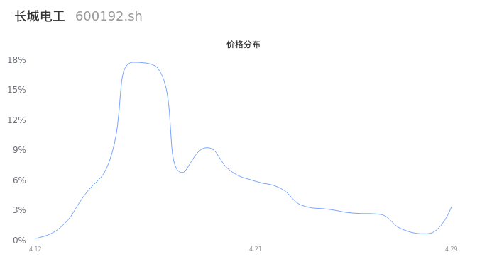 然后我们来看下当日成交的价格分布。将今天股票的最低价与最高价之差形成的价格区间进行切片,并画直方图进行分析,观察成交量在价格区间的分布情况。可以发现,当日的成交分布呈现左偏峰分布,这说明,该股票大部分成交集中在中位数以下,说明交易重心下降,近期可能会存在短线下跌风险。