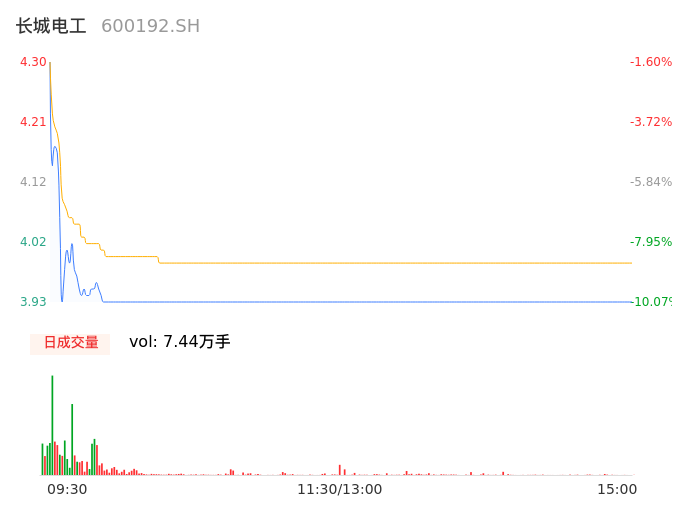 04月16日,长城电工收报3.93,股价涨幅-10.07%,成交金额2966.22万元,换手率1.68%。