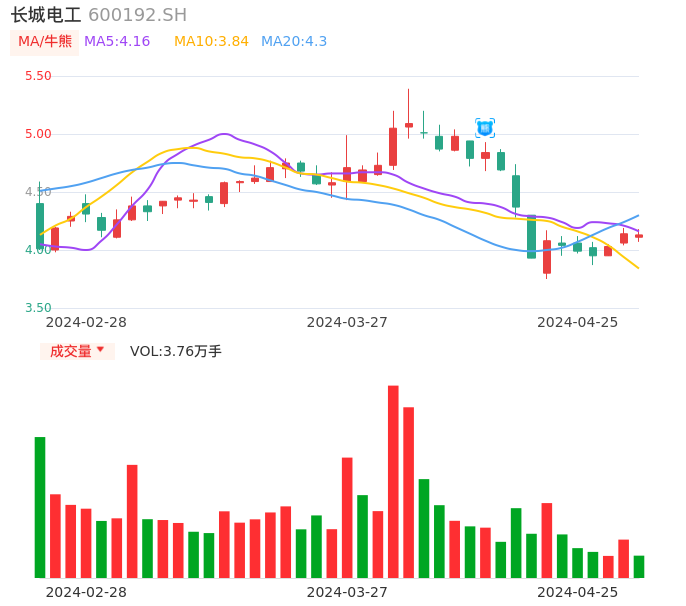 04月25日,长城电工收报4.13,股价涨幅-0.24%,成交金额1551.27万元,换手率0.85%。