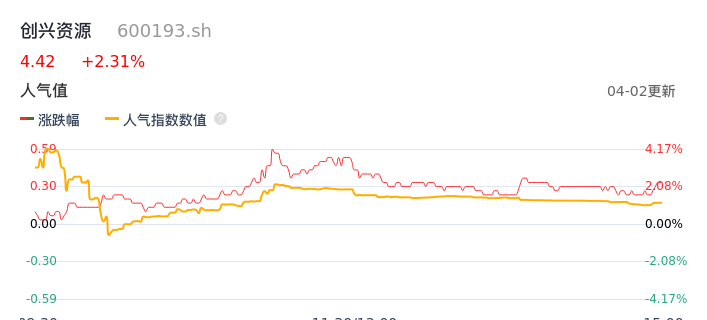 04月02日,创兴资源收报4.42,股价涨幅2.31%,成交金额1888.30万元,换手率1.01%。