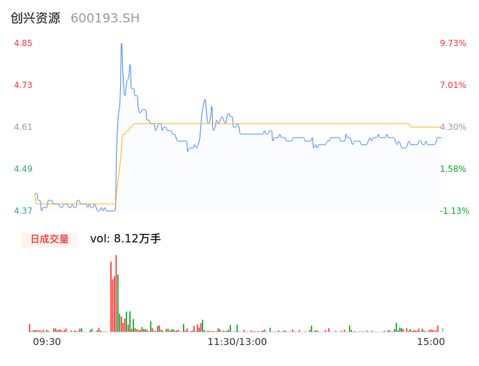 04月03日,创兴资源收报4.57,股价涨幅3.39%,成交金额3746.39万元,换手率1.91%。