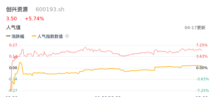 04月17日,创兴资源收报3.50,股价涨幅5.74%,成交金额3667.11万元,换手率2.52%。
