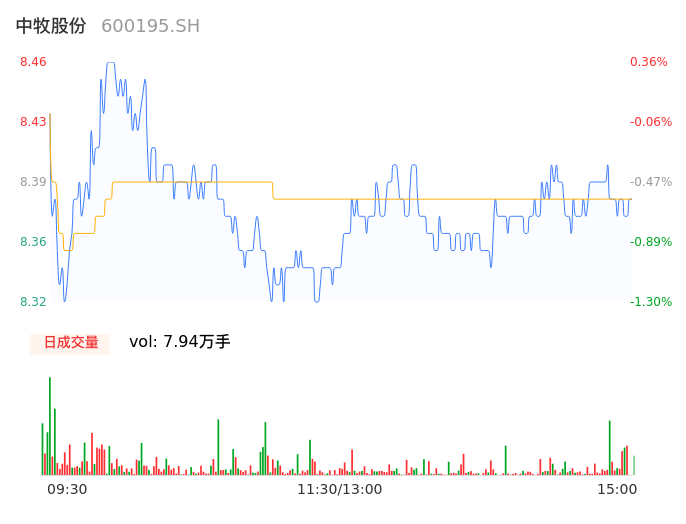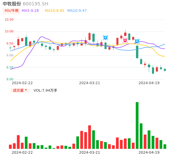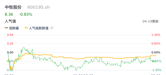 04月19日,中牧股份收报8.36,股价涨幅-0.83%,成交金额6647.82万元,换手率0.78%。