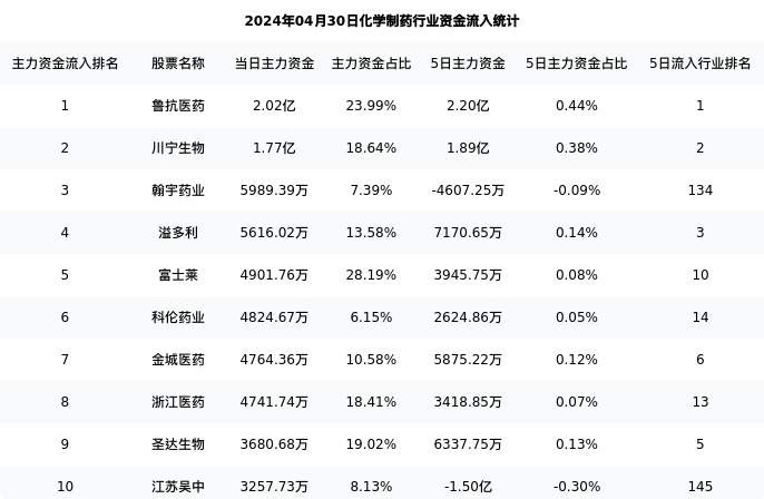 从主力资金流向来看,化学制药行业今日主力资金流入80.35亿元,在所有申万二级行业中排名:81/131。