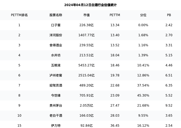 从估值角度看:伊力特最新市盈率PETTM为36.45,在行业内排名15/20,处于16.12分位。