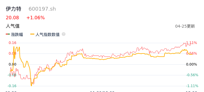 04月25日,伊力特收报20.08,股价涨幅1.06%,成交金额8698.89万元,换手率0.92%。