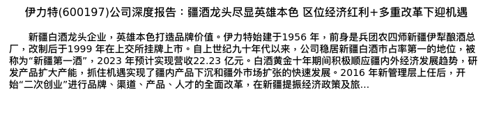 值得注意的是:2024年04月方正证券的王泽华分析师,首次发布关于伊力特的研究报告,标题为:伊力特(600197)公司深度报告:疆酒龙头尽显英雄本色 区位经济红利+多重改革下迎机遇。