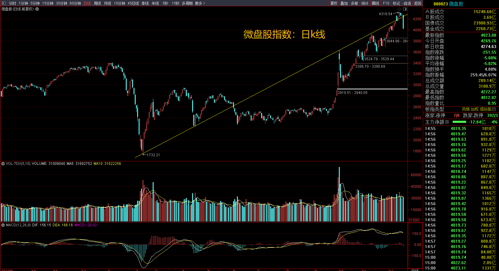 简单一句总结吧:一般来说市场风格的切换是一个过程,过程是需要时间慢慢转弯的,不会一下子就切过去,微盘股肯定还会反复活跃,一些好的小票敢于低吸还是低吸;当然,如果后续市场真的切到了大盘股(绩优股),那就是趋势不可逆转,持续时间足够你去参与,就类似今年以来微盘股的大牛市,它的持续时间基本是用季度或年来衡量,不需要担心踏空什么的。