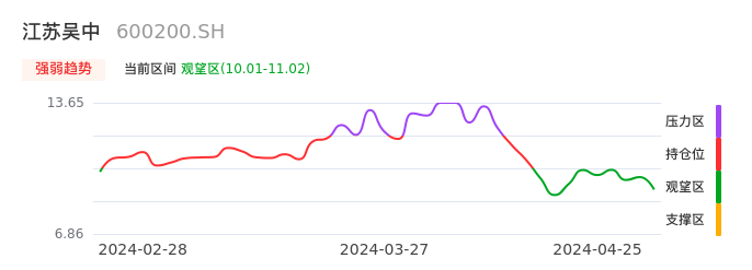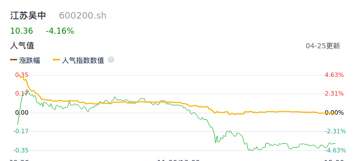04月25日,江苏吴中收报10.36,股价涨幅-4.16%,成交金额6.71亿元,换手率8.86%。