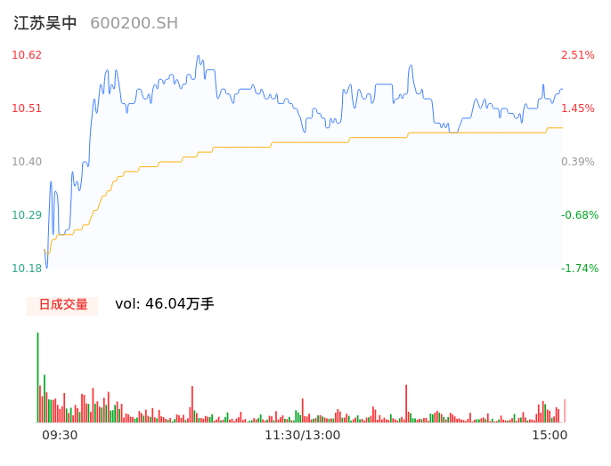 04月26日,江苏吴中收报10.55,股价涨幅1.83%,成交金额4.82亿元,换手率6.49%。
