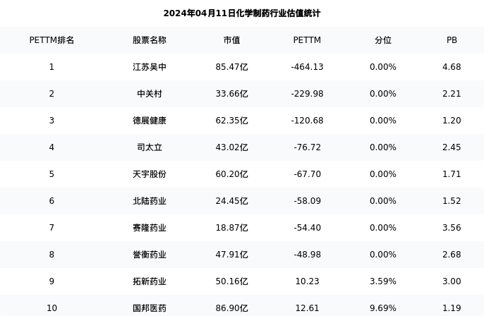 江苏吴中最新报告期数据为三季度,下表汇总了化学制药行业内市值靠前的公司三季度主要经营数据