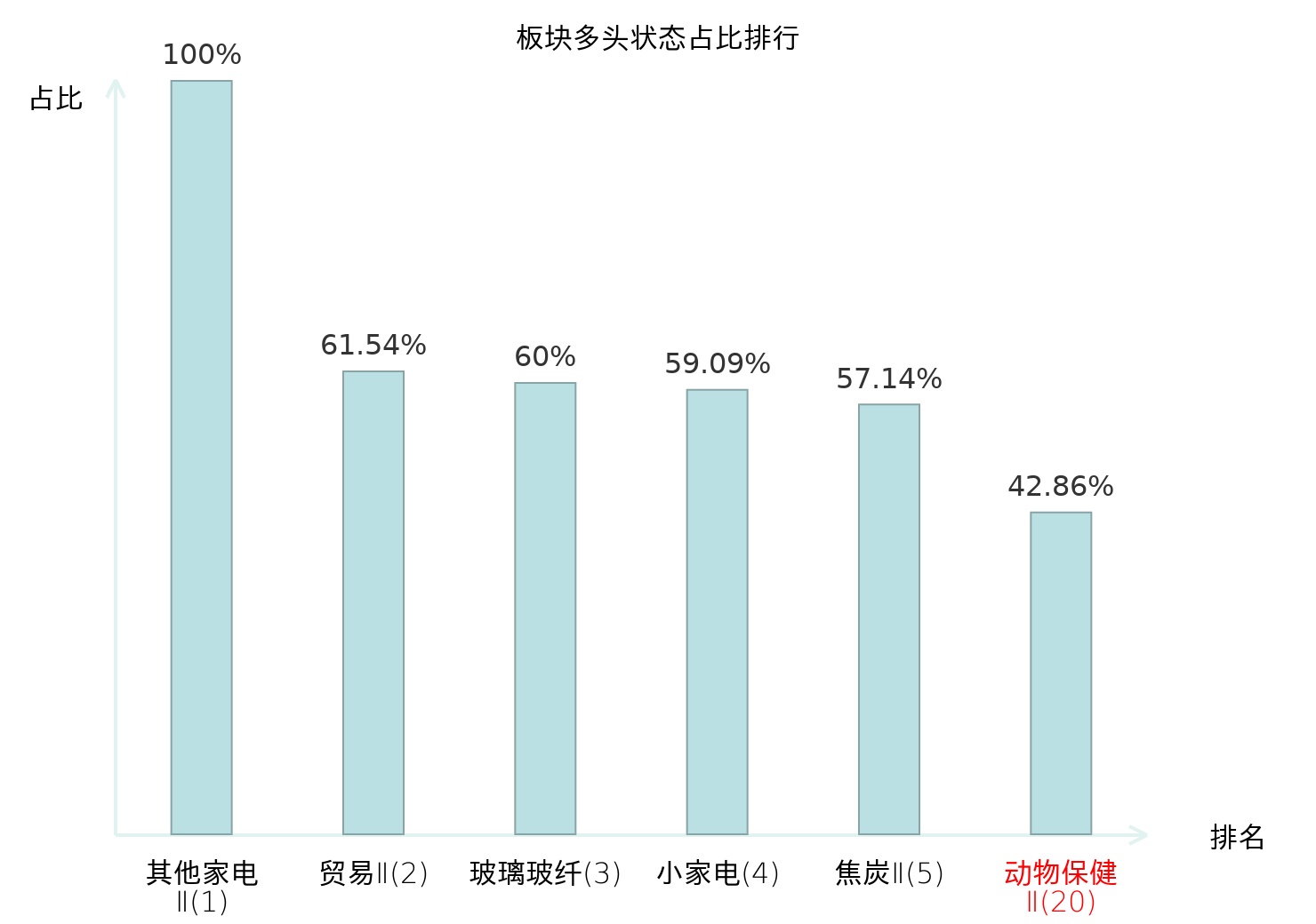 全市场所有行业板块中主力多头状态占比排名中,其他家电Ⅱ板块位居第一。摩托车及其他板块名次提升最快,较昨日上升76位。