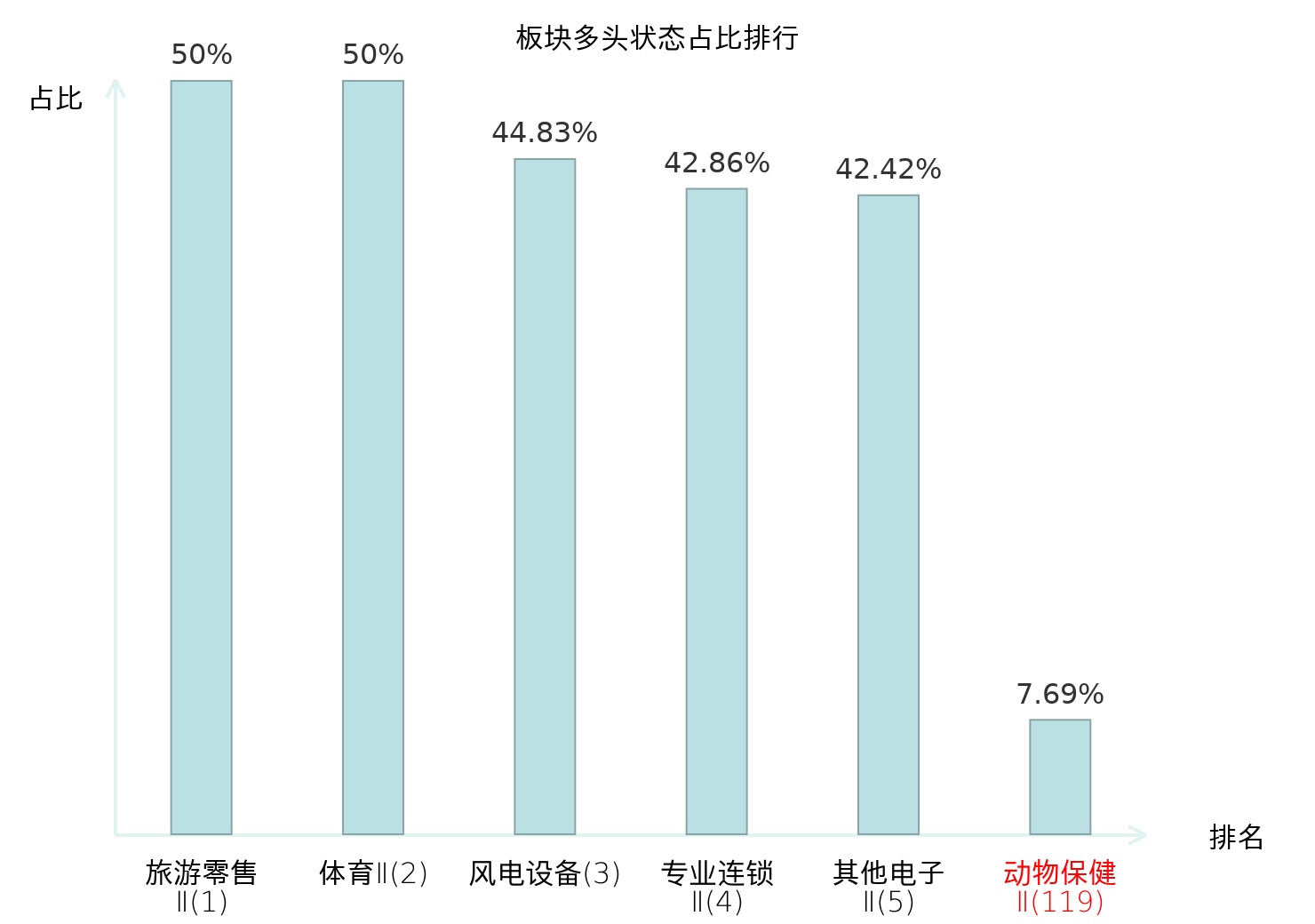 从主力宝信号数据分析,生物股份所属的动物保健Ⅱ板块中共1只股票处于主力多头状态,主力多头状态占比在全行业中排名第119位,较昨日下降68位;排名下降表明主力对该板块整体看多意愿减弱,反映出主力态度趋于谨慎;全市场所有行业板块中主力多头状态占比排名中,旅游零售Ⅱ板块位居第一;化妆品板块名次提升最快,较昨日上升66位;这些变动体现了主力资金在不同行业间的配置调整,为投资者评估板块相对强度及潜在趋势变化提供了客观依据。