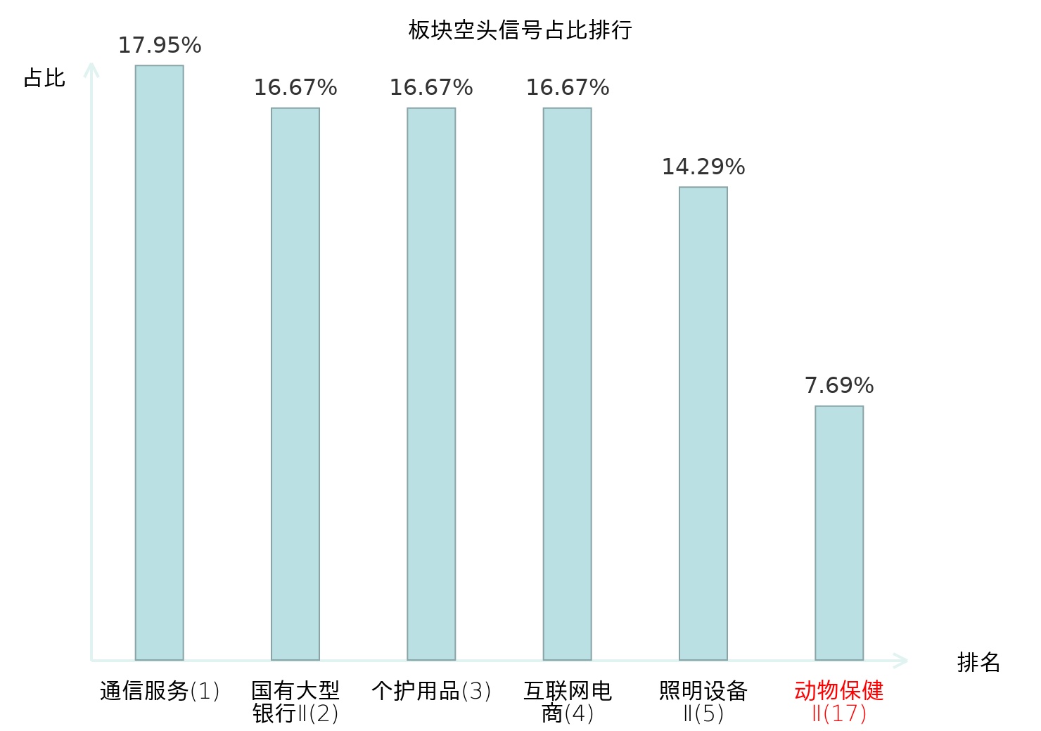全市场所有行业板块中主力空头信号占比排名中,通信服务板块位居第一。种植业板块名次提升最快,较昨日上升110位。