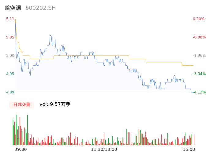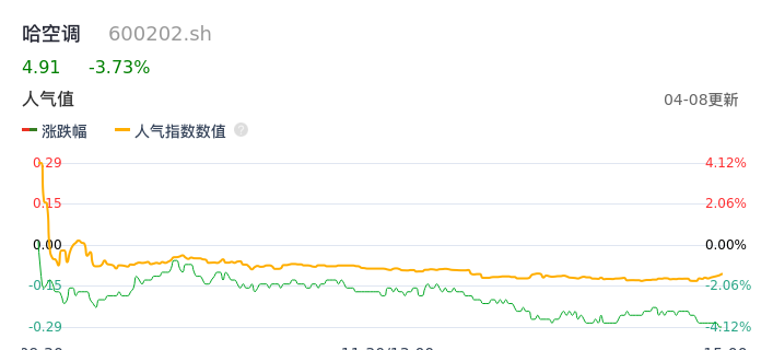 04月08日,哈空调收报4.91,股价涨幅-3.73%,成交金额4754.43万元,换手率2.50%。