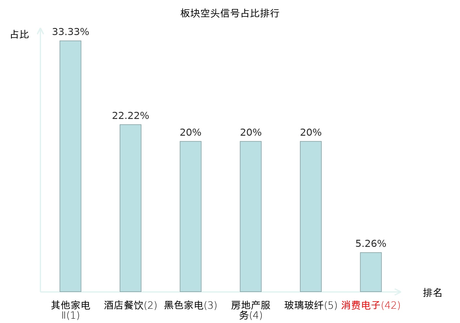 全市场所有行业板块中主力空头信号占比排名中,其他家电Ⅱ板块位居第一。家居用品板块名次提升最快,较昨日上升111位。