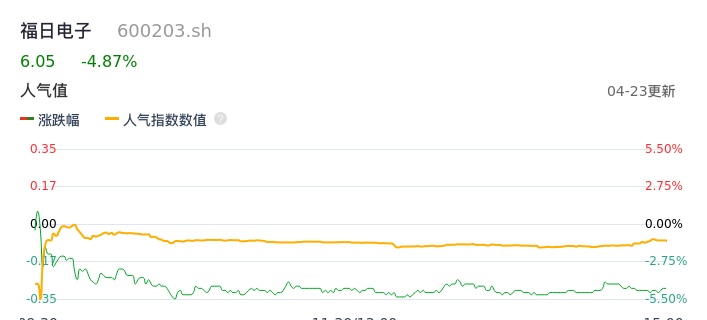 04月23日,福日电子收报6.05,股价涨幅-4.87%,成交金额2.78亿元,换手率7.68%。