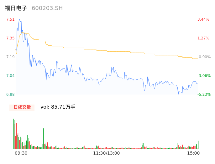 04月19日,福日电子收报6.95,股价涨幅-4.27%,成交金额6.15亿元,换手率14.45%。