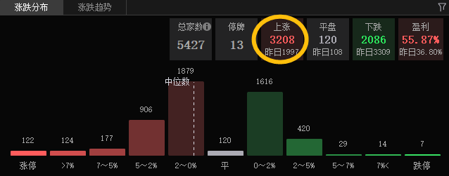 红盘个股3200+,涨停122只,跌停7只,虽然个股中位数不高,但是今天涨停板数量却是自8月18日以来最多的。整体的赚钱效应较好,几乎没有什么亏钱效应。