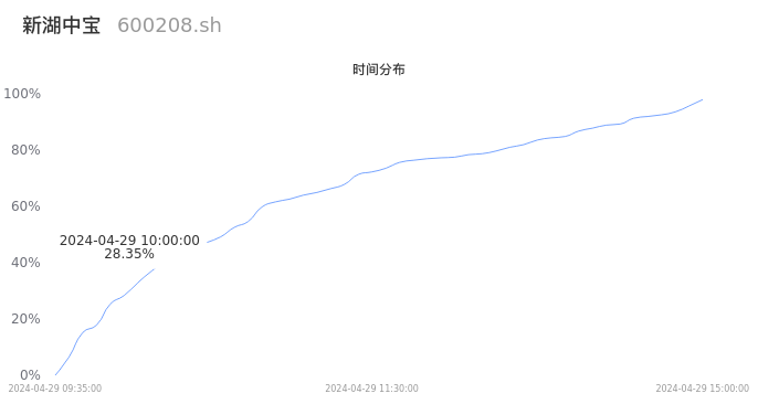 600208新湖中宝2024年04月29日成交103.59万手,成交金额2.22亿元,相较昨日放量32.76万手,换手率1.22%,成交清淡。