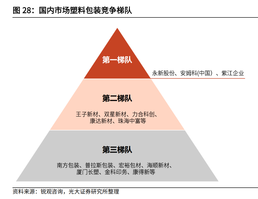 第一梯队为龙头型企业,主要包括紫江企业永新股份
