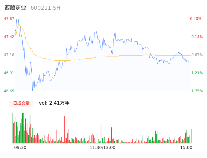 04月25日,西藏药业收报47.06,股价涨幅-0.88%,成交金额1.13亿元,换手率0.97%。