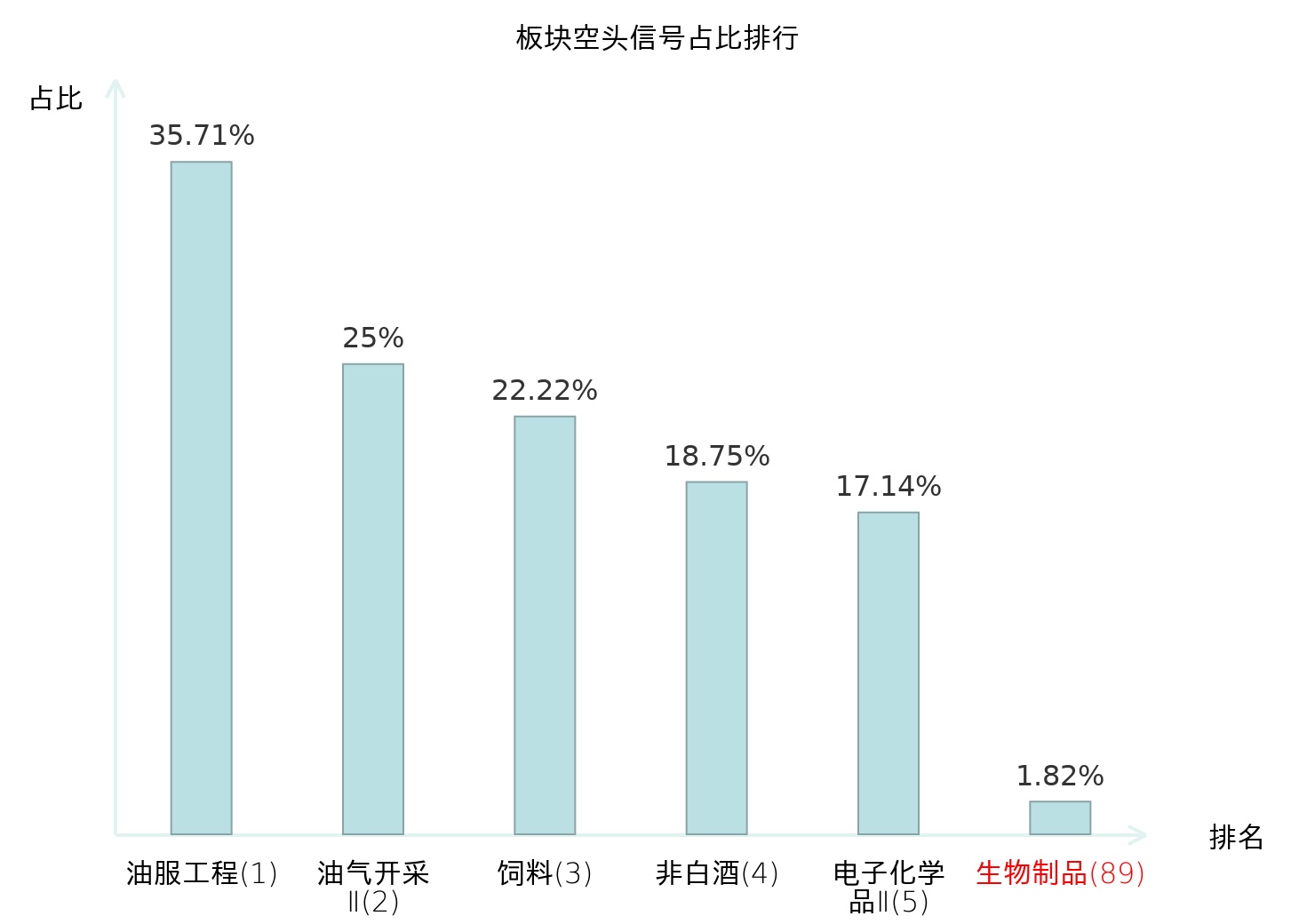 全市场所有行业板块中主力空头信号占比排名中,油服工程板块位居第一。电池板块名次提升最快,较昨日上升104位。