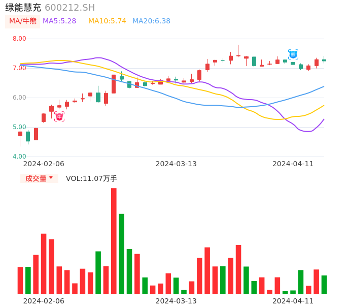 04月11日,绿能慧充收报7.24,股价涨幅-0.69%,成交金额8023.76万元,换手率2.16%。