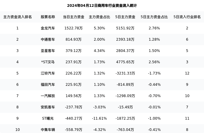 从主力资金流向来看,商用车行业今日主力资金流入10.91亿元,在所有申万二级行业中排名:74/131。