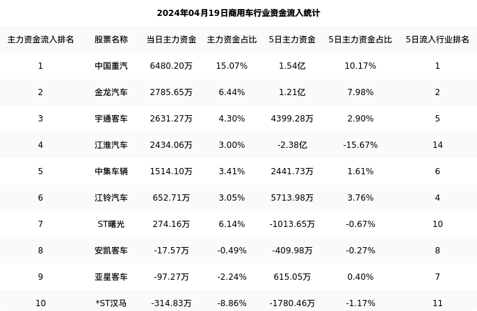 从主力资金流向来看,商用车行业今日主力资金流入13.45亿元,在所有申万二级行业中排名:79/131。