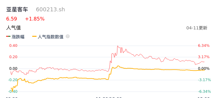 04月11日,亚星客车收报6.59,股价涨幅1.85%,成交金额1.06亿元,换手率5.59%。