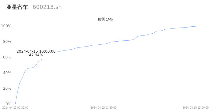 根据成交分布分析,该股票当天放量成交,成交清淡。时间上看,早盘前半小时成交量占据当天总成交量的47.94%;价格上看,成交呈现左偏峰。成交分布分析主要研究股票成交的分布特性,不具有预测功能,请知悉。