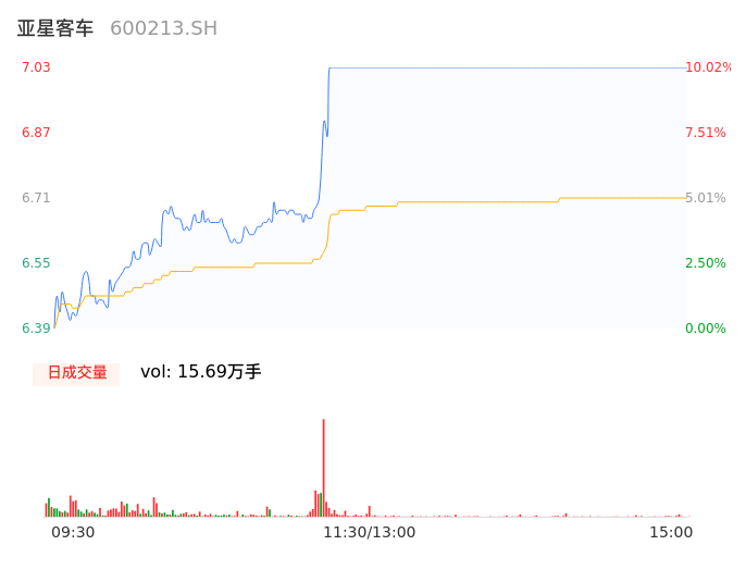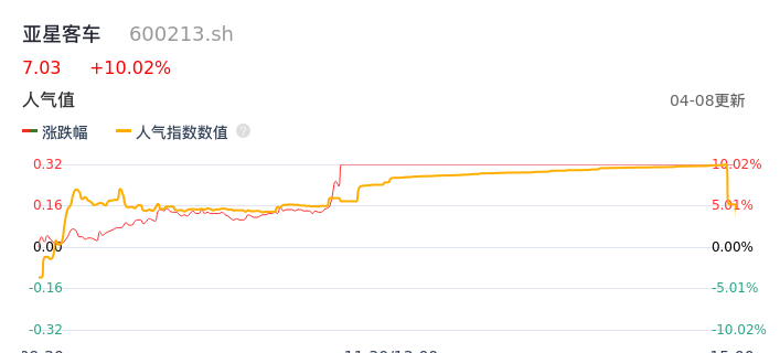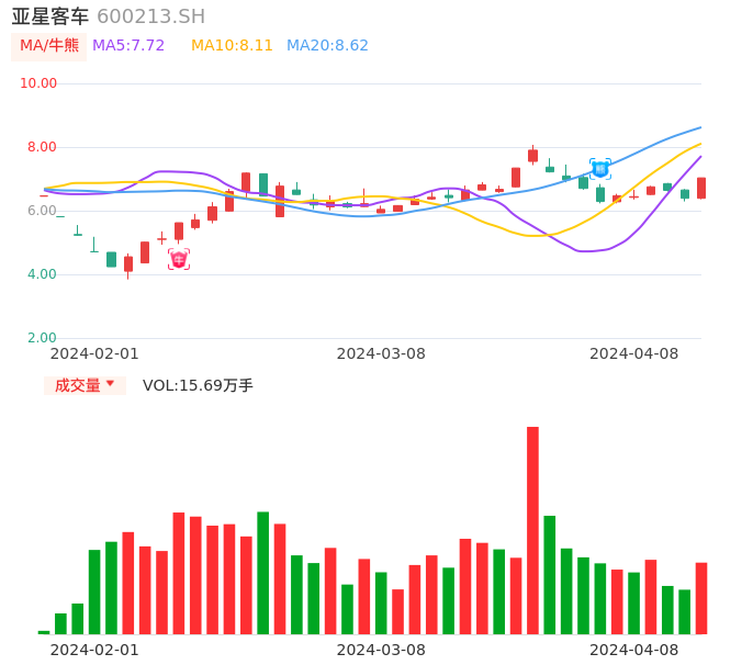 04月08日,亚星客车收报7.03,股价涨幅10.02%,成交金额1.05亿元,换手率5.49%。
