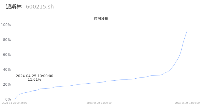 600215派斯林2024年04月25日成交17.61万手,成交金额1.53亿元,相较昨日放量4.61万手,换手率3.86%,成交清淡。