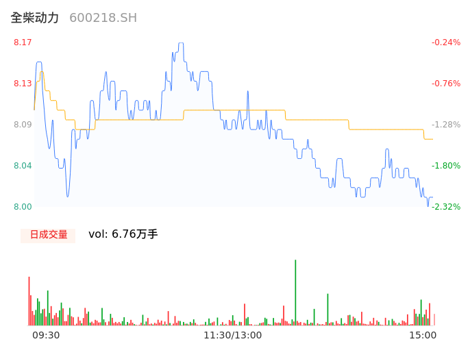 04月08日,全柴动力收报8.01,股价涨幅-2.20%,成交金额5453.56万元,换手率1.64%。