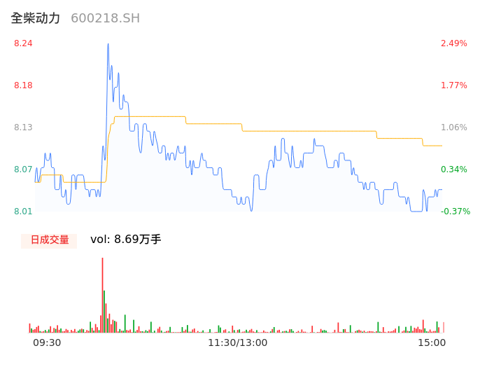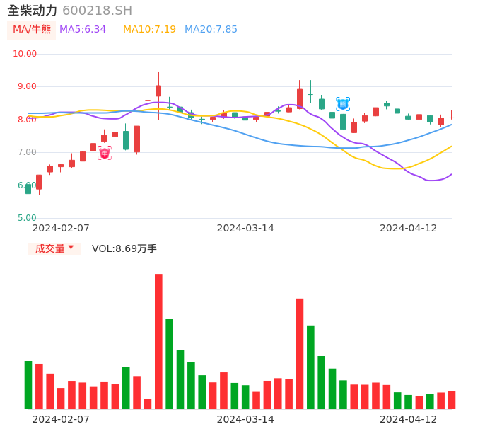 04月12日,全柴动力收报8.05,股价涨幅0.12%,成交金额7040.39万元,换手率2.11%。