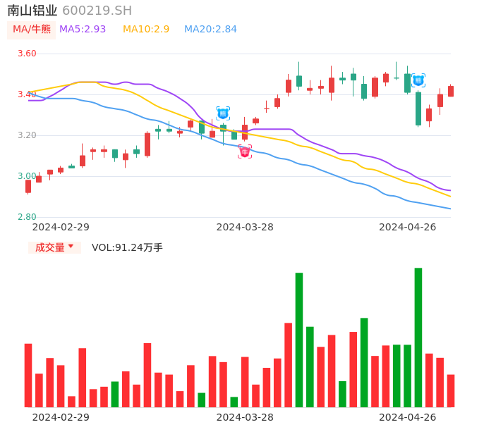 04月26日,南山铝业收报3.44,股价涨幅1.18%,成交金额3.12亿元,换手率0.78%。