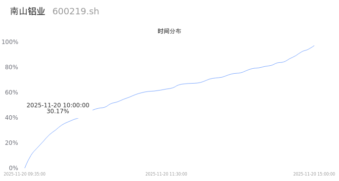600219南山铝业2025年11月20日成交176.10万手,成交金额8.76亿,相较昨日缩量35.72万手,换手率1.52%,成交清淡。