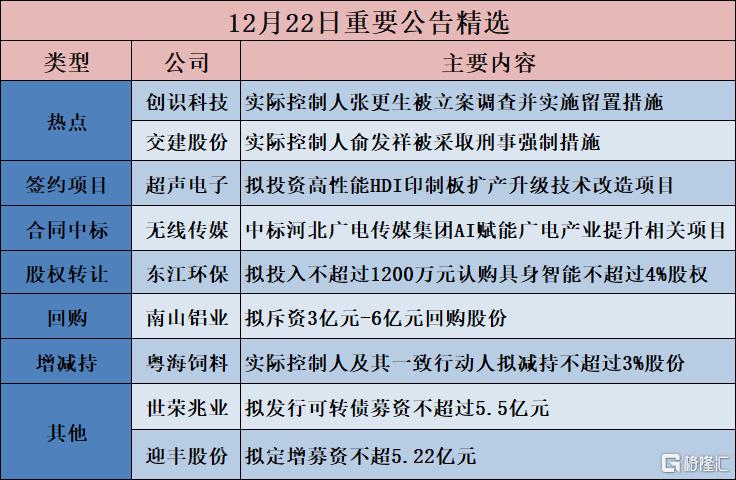 格隆汇公告精选︱超声电子:拟投资高性能HDI印制板扩产升级技术改造项目;交建股份:实际控制人俞发祥被采取刑事强制措施