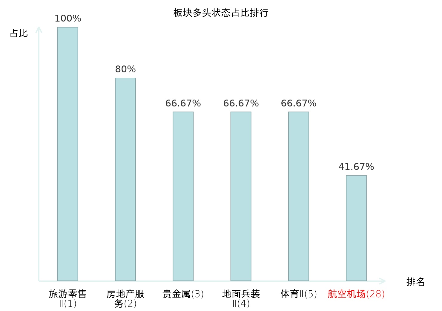 全市场所有行业板块中主力多头状态占比排名中,旅游零售Ⅱ板块位居第一。个护用品板块名次提升最快,较昨日上升70位。