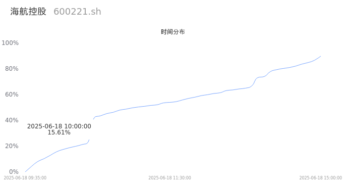 600221海航控股2025年06月18日成交112.92万手,成交金额1.49亿,相较昨日放量5.99万手,换手率0.34%,成交清淡。