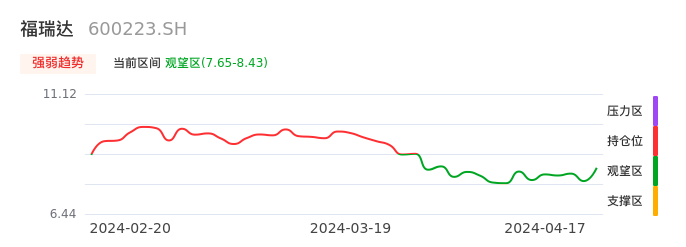 我们来看一下该股的九方特色指标强弱趋势的情况:福瑞达自03月27日从持仓区下穿到观望区。股价近期持续下跌后,短期出现止跌迹象。后续重点关注能否再次站上多空分界点:8.43元。如未能有效突破则可能进入新一轮空头行情。