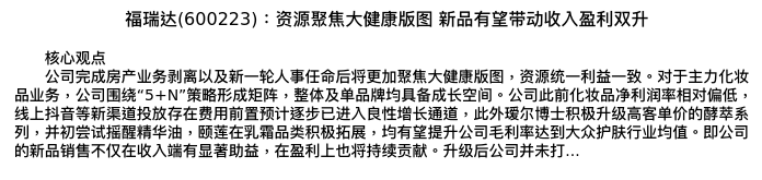 值得注意的是:2024年04月中信建投证券的于佳琪/刘乐文/叶乐分析师,首次发布关于福瑞达的研究报告,标题为:福瑞达(600223):资源聚焦大健康版图 新品有望带动收入盈利双升。