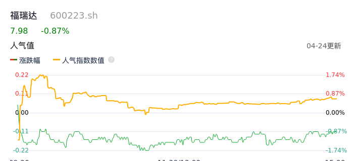 04月24日,福瑞达收报7.98,股价涨幅-0.87%,成交金额5170.43万元,换手率0.64%。