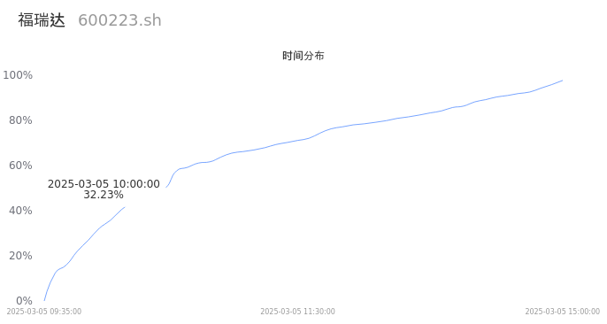 根据成交分布分析,该股票当天放量成交,成交清淡。时间上看,早盘前半小时成交量占据当天总成交量的32.23%;价格上看,成交呈现左偏峰。成交分布分析主要研究股票成交的分布特性,不具有预测功能,请知悉。