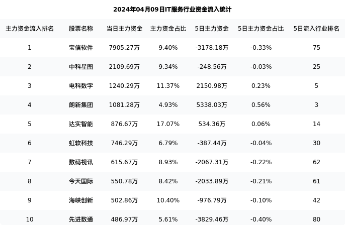 从主力资金流向来看,IT服务行业今日主力资金流入38.14亿元,在所有申万二级行业中排名:128/131。